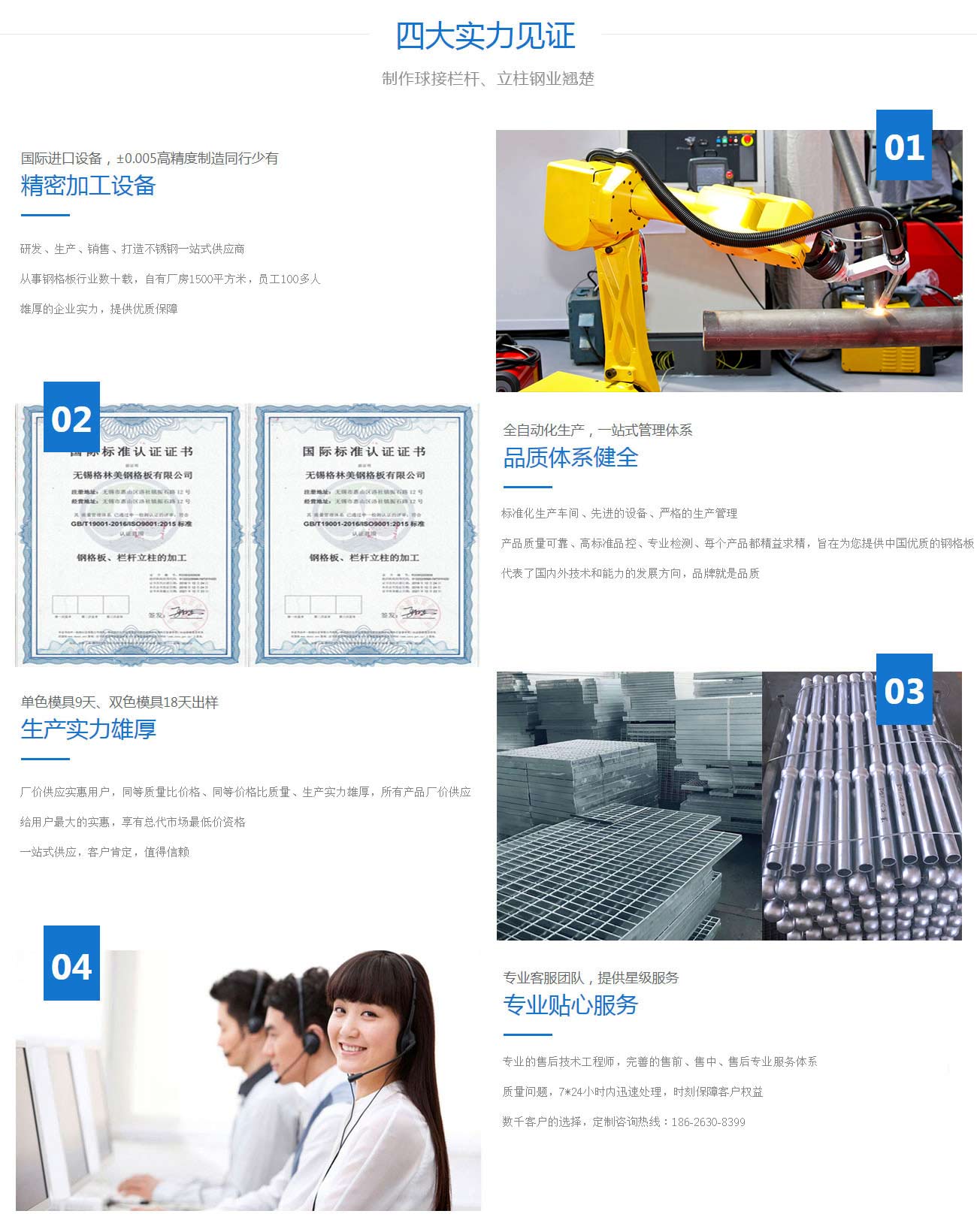 “格林美鋼格板有限公司”擁有先進(jìn)的管理理念、科學(xué)成熟的管理方案、優(yōu)秀的設(shè)計團(tuán)隊及優(yōu)越的執(zhí)行力。多年來,為了滿足市場不斷的變化需求,公司一直致力于鋼格板及相關(guān)產(chǎn)品的研究開發(fā),在實(shí)踐中不斷的提升自身的軟硬件實(shí)力。在公司全體員工多年的不懈拼搏,努力追求下,無錫格林美鋼格板有限公司已成長為專業(yè)研制、開發(fā)和大型制作各類碳鋼鋼格板(鋼格柵板)、樓梯踏步板、鋼梯、扶手欄桿、球接欄桿;不銹鋼鋼格板、不銹鋼鋼板網(wǎng)、不銹鋼鋼梯、欄桿;復(fù)合鋼格板、復(fù)合鋼板網(wǎng);水溝蓋板、樹池蓋板、圍墻格柵、天花吊頂格柵;鋁格柵、鋁梯;玻璃鋼格柵、管道支架及各類金屬結(jié)構(gòu)件的優(yōu)秀企業(yè)。
